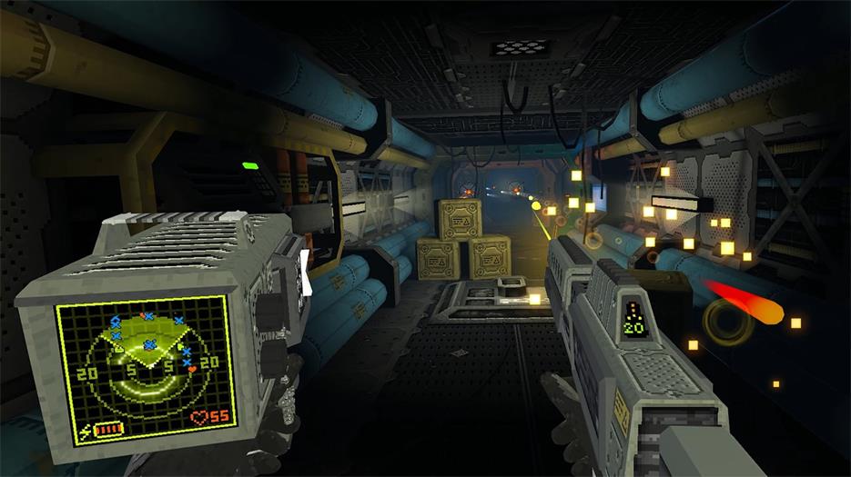 受到 Doom 和 Quake 等经典作品的启发,Shock Troops 的视觉特征包括像素艺术纹理以及 3D 环境和 2D 精灵的混合,将经典风格与现代照明无缝融合。