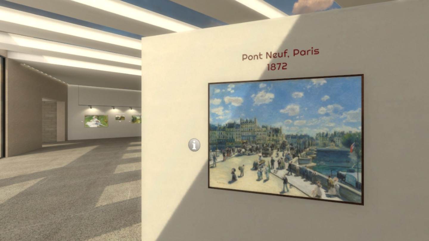 The Art Gallery VR 是一种独一无二的虚拟现实体验,它带领艺术爱好者踏上穿越皮埃尔·奥古斯特·雷诺阿 (Pierre-Auguste Renoir) 世界的旅程。 该应用程序将用户带到一个设计精美的虚拟艺术画廊,在那里他们可以近距离和个性化地探索雷诺阿的标志性画作。