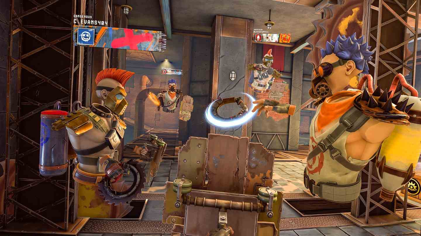 独自或与队友一起进行激烈的战斗。 冲过生锈的环境,发射致命的飞盘并掌握将它们从墙壁和表面弹回的艺术。