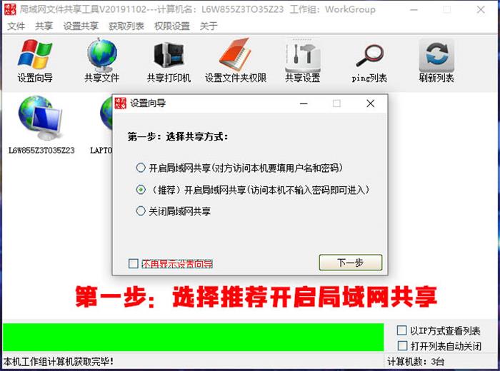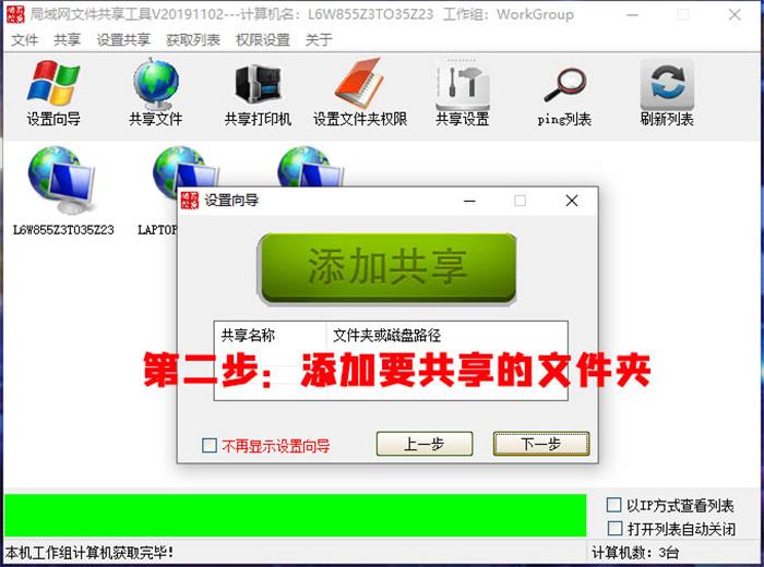 从本网站下载局域网共享软件后,打开软件点击键共享,具体操作看下图: